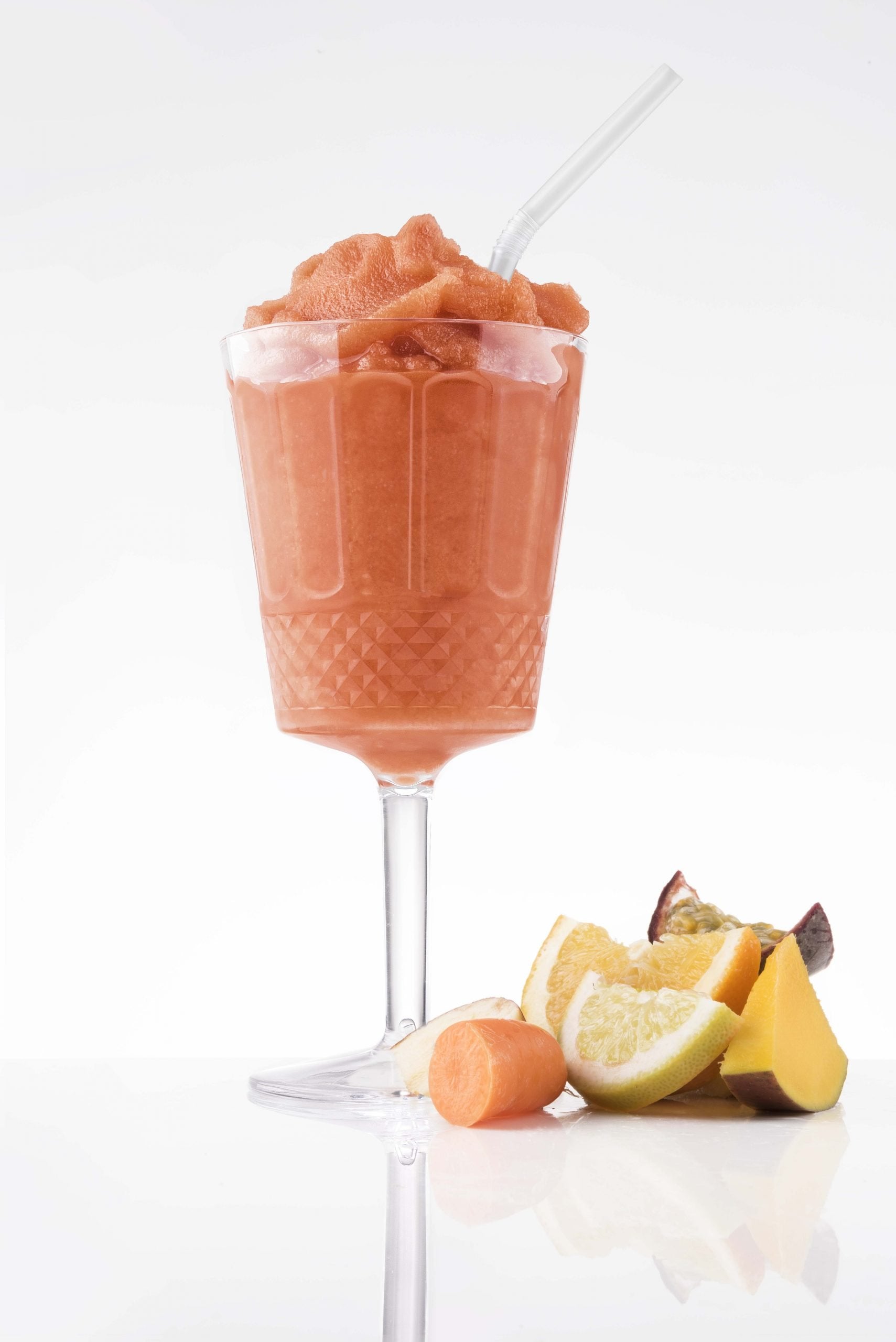 Βάζοντας τη φαντασία μας και τις καλύτερες ποιότητες φρούτων, δημιουργήσαμε έναν πετυχημένο και εύγεστο πολτό από 8 φρούτα (μήλο, πορτοκάλι, βερίκοκο, ροδάκινο, καρότο, λεμόνι, μάνγκο και φρούτα του πάθους), για μια εξαιρετικά μοναδική γρανίτα.